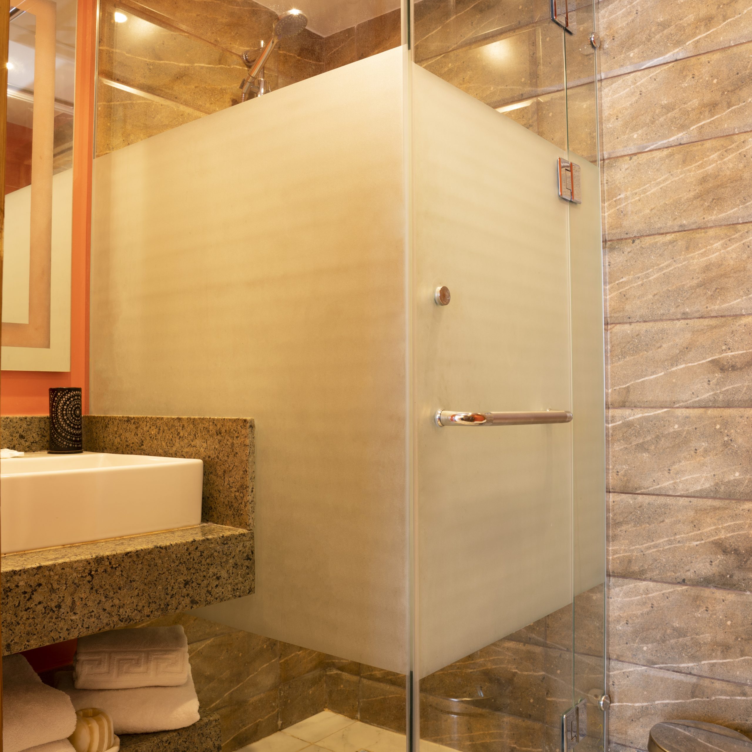 Our ultramodern glass bathroom is equipped with hairdryer, magnifying shaving and make up mirror as well as all the amenities you could possible need during your stay.
