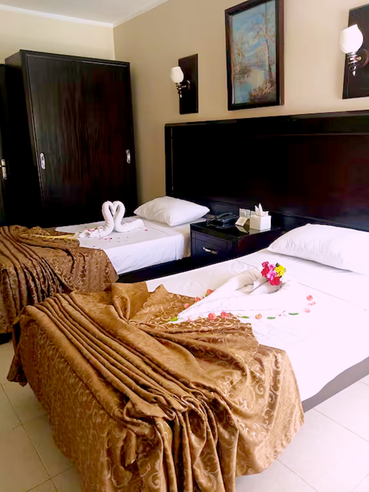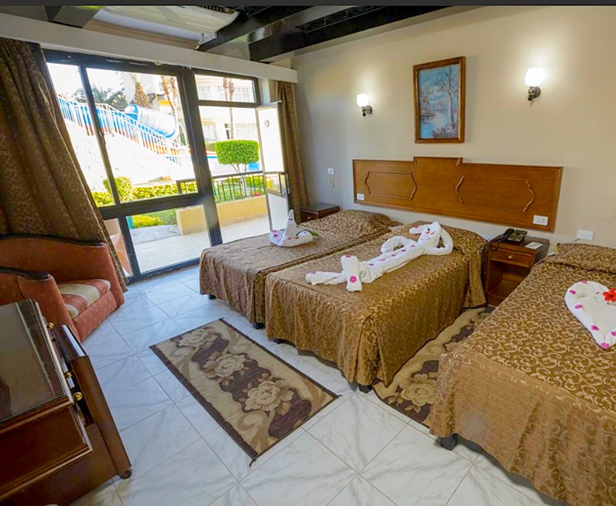Standard Room comprises of 3 Twin Beds, 2 Bedside Tables, a Desk & Chair. The room is furnished with wall to wall carpeting, trendy furnishings and a balcony.