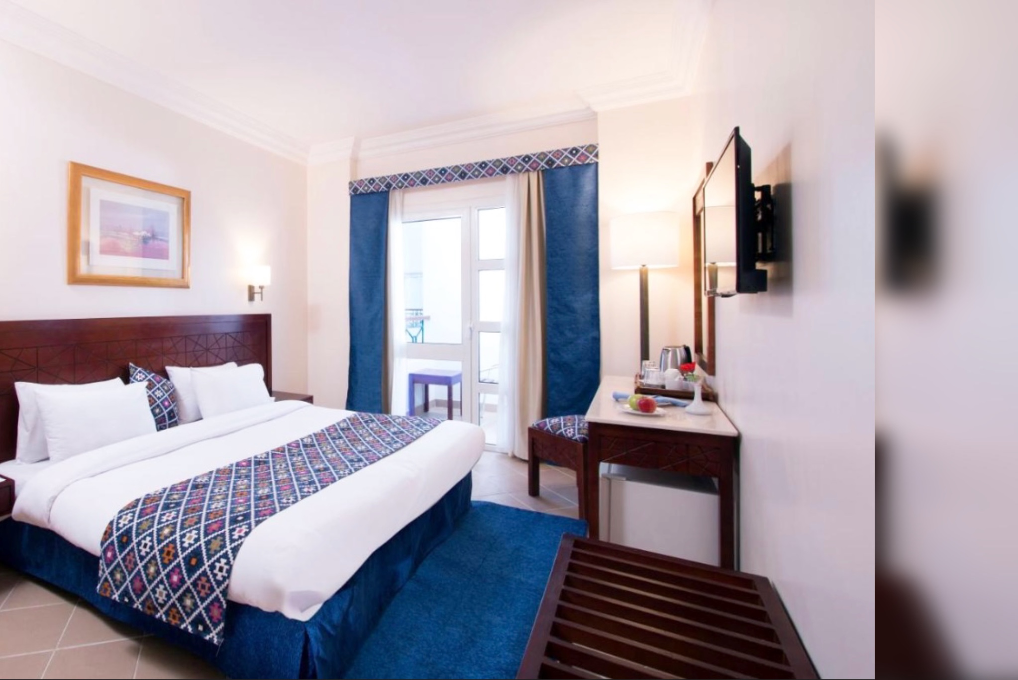 Standard Room comprises of 3 Twin Beds, 2 Bedside Tables, a Desk & Chair. The room is furnished with wall to wall carpeting, trendy furnishings and a balcony.