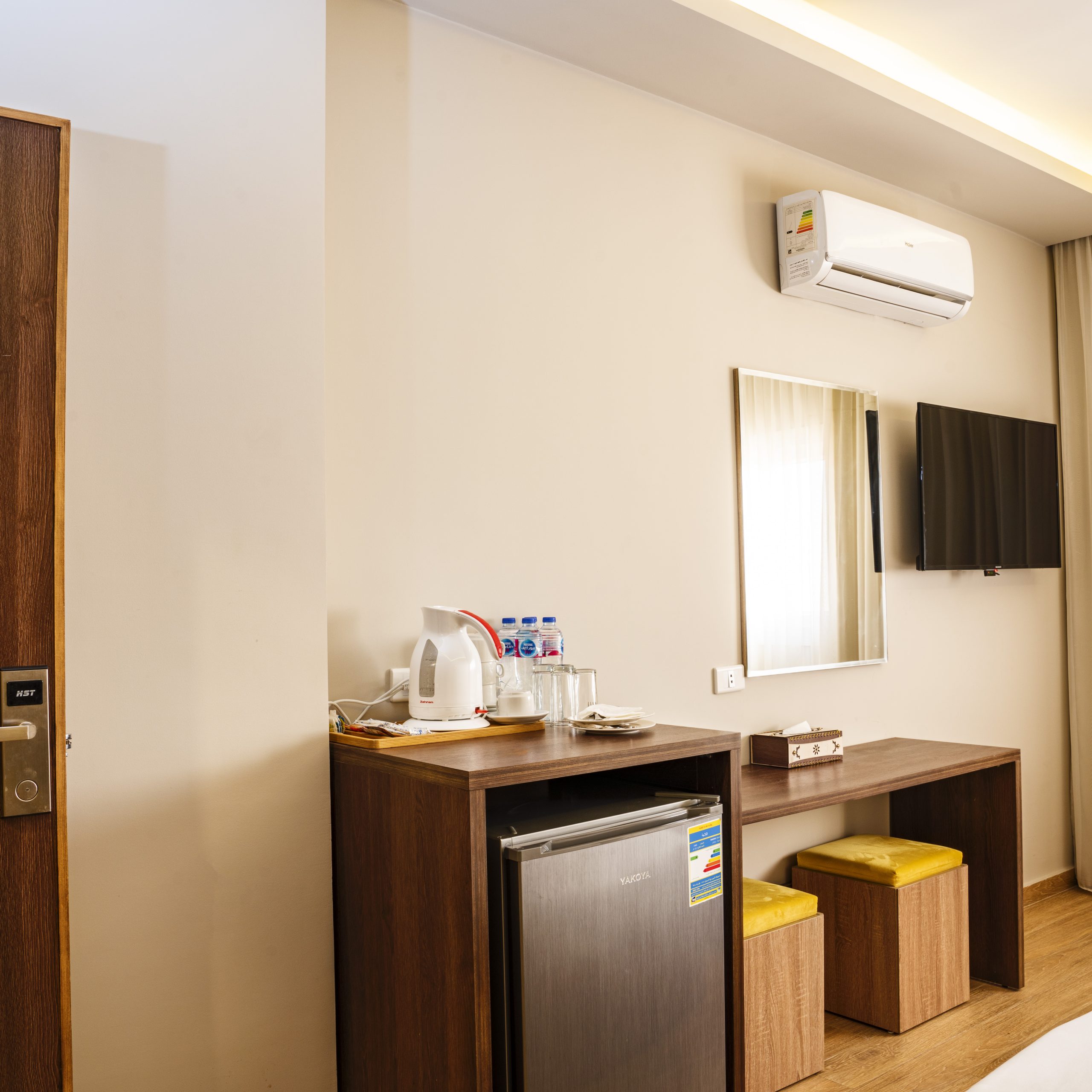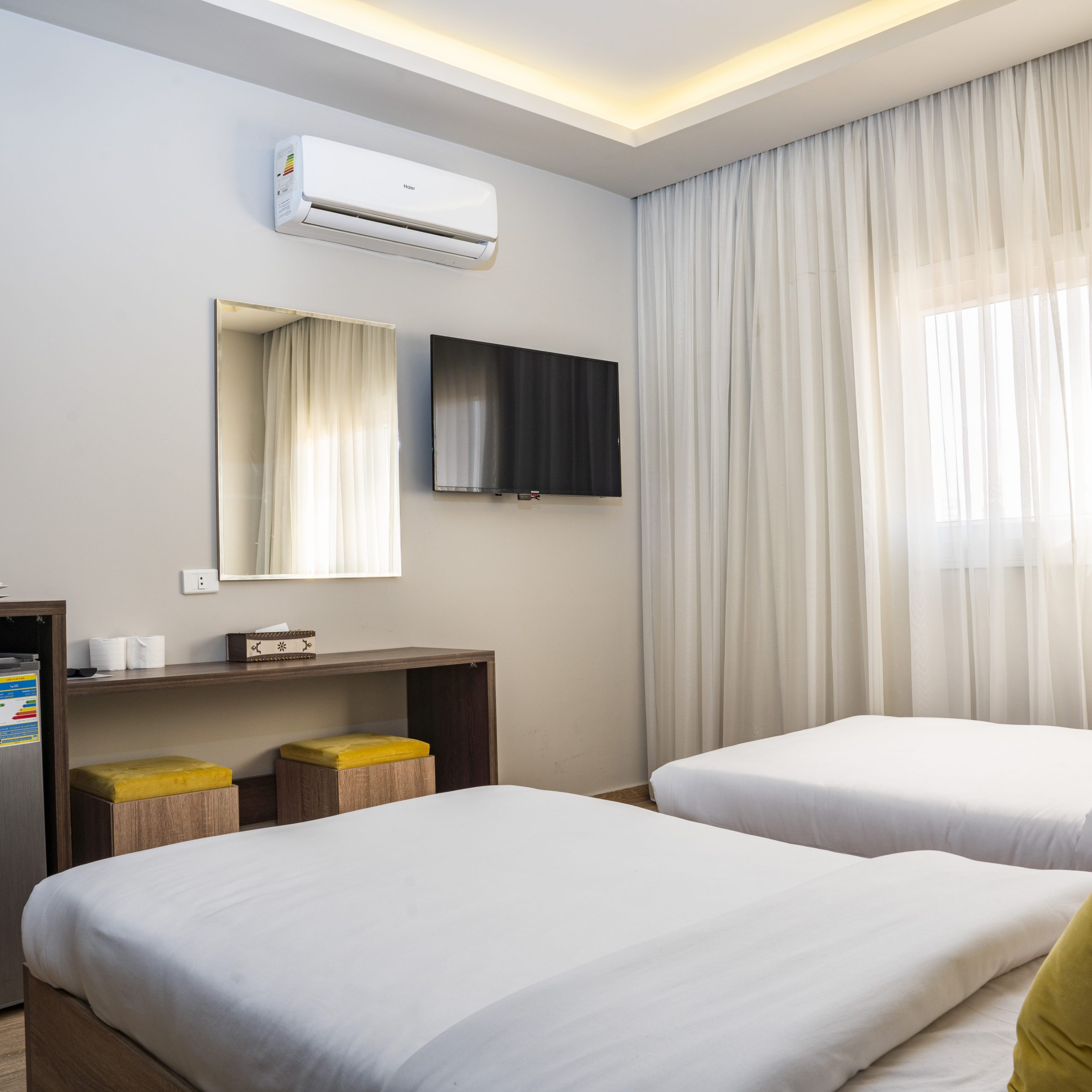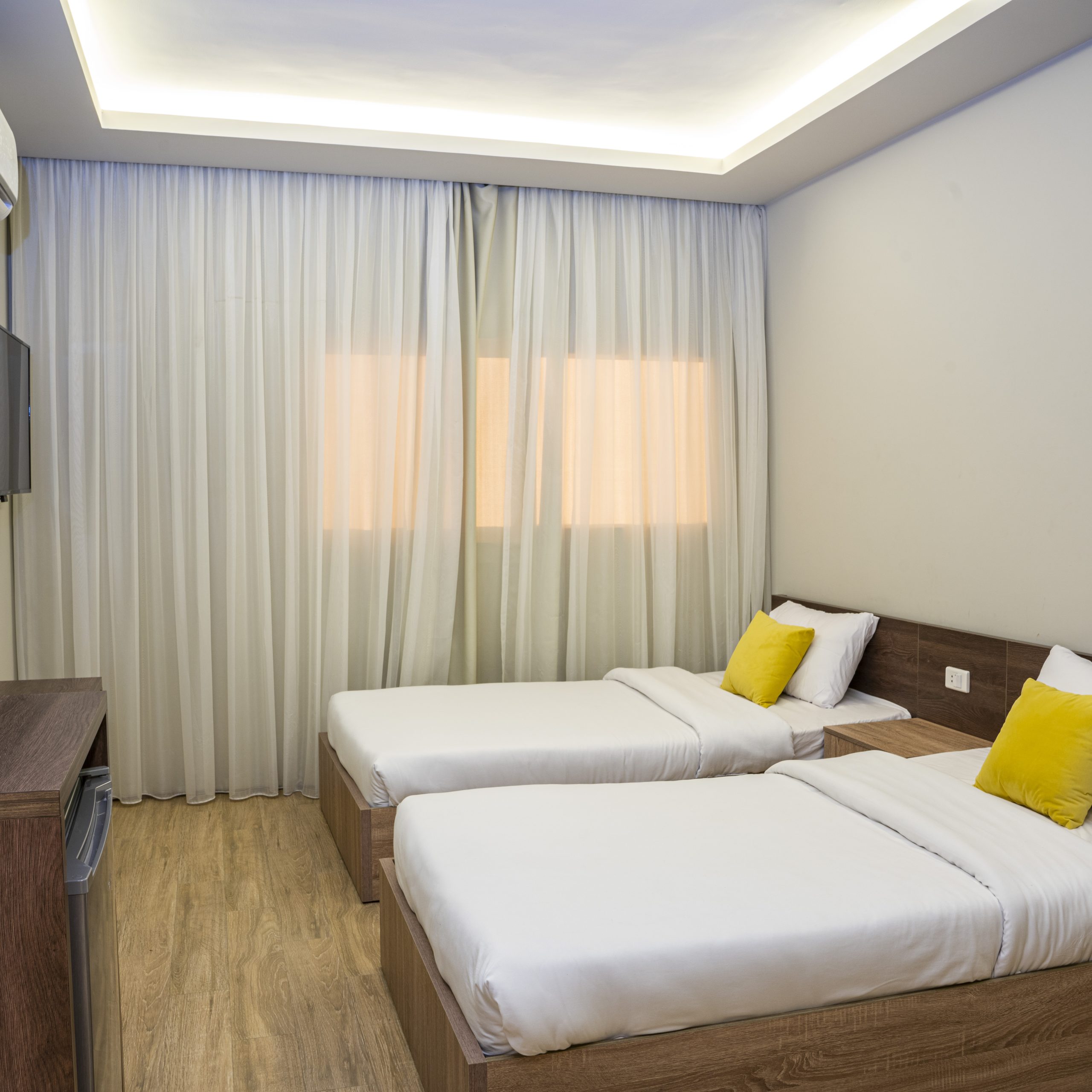 Deluxe Superior Room comprises of 1 Double Bed and 2 Twin bed, 2 Bedside Tables, a Desk & Chair. The room is furnished with trendy furnishings with sea view.